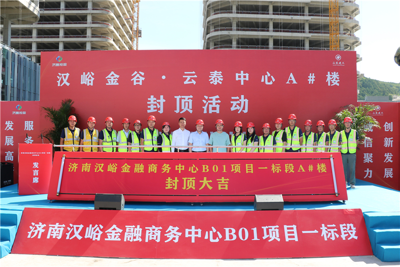 8月23日上午9時,集團承建的漢峪金谷·云泰中心A#樓喜封金頂。濟南高新智慧谷投資置業有限公司董事長兼總經理常艷麗;濟南高新智慧谷投資置業有限公司副總經理、濟南東禾置業有限公司總經理駱虎;濟南高新智慧谷投資置業有限公司投拓總監費世俊;營特國際工程咨詢集團有限公司副總經理金永滿;山東建工集團副董事長師厚紀;山東建工集團副總經理、安全總監蘇世凱等領導出席儀式,與項目建設者一同見證這激動人心的時刻。